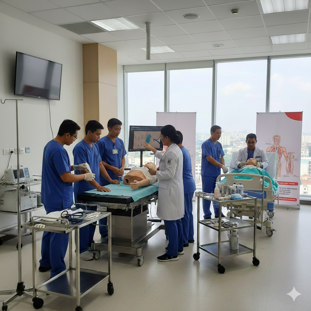 Pusat pelatihan (workshop) dan konsultasi teknis untuk meningkatkan kompetensi SDM dalam menguasai teknologi kesehatan modern.